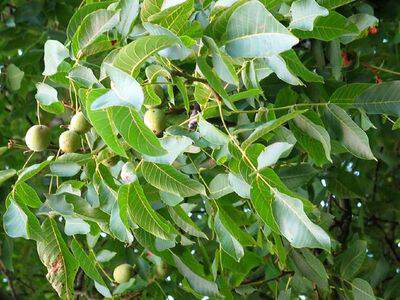 Arbre de grand développement. Longue feuille composée verte. Noix comestibles.
